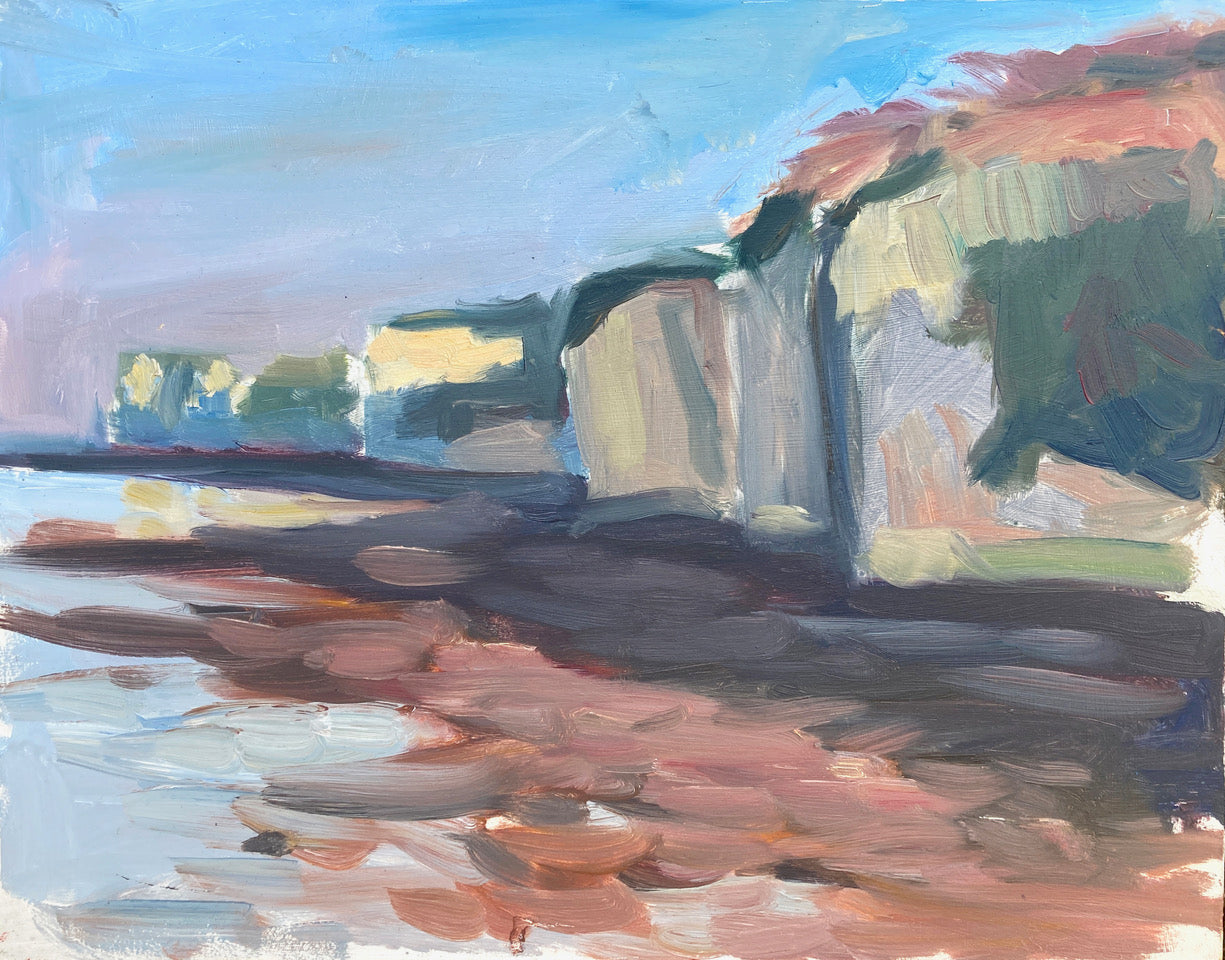 Ben is happiest when he combines his two favourite pastimes: walking the Purbeck coast and countryside and painting from his portable pochade paint box. This allows him to work from life in oils, his preferred medium, capturing the tones and colours from a direct study in situ. These sketches of a subject or moment are invaluable for studio work or stand-alone final pieces.